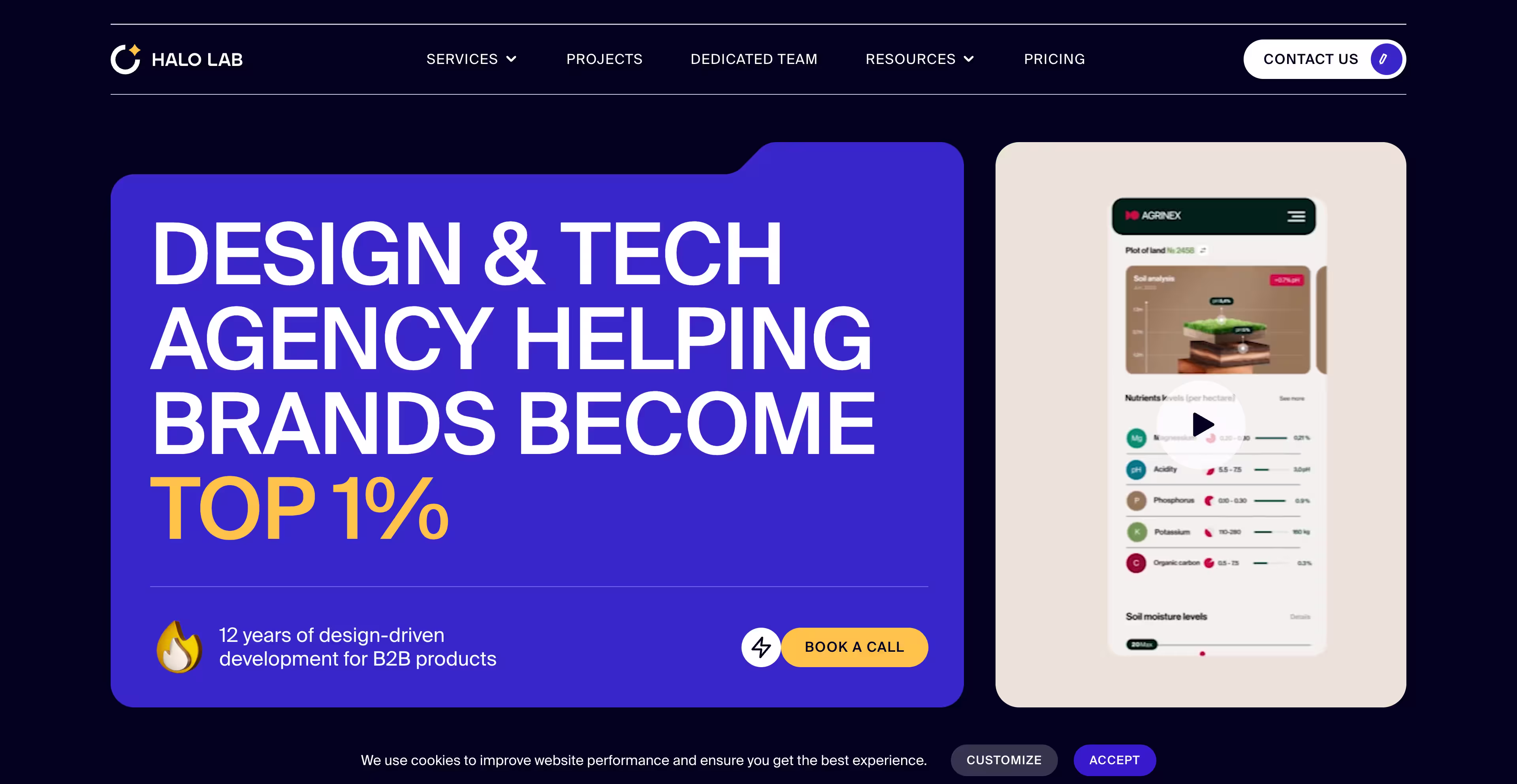 They’re an excellent fit for SaaS and product-led companies that need a scalable design system and consistent visual language rather than heavy experimental design. Halo Lab’s approach ensures clarity, performance, and maintainability across growing websites and multi-team environments.