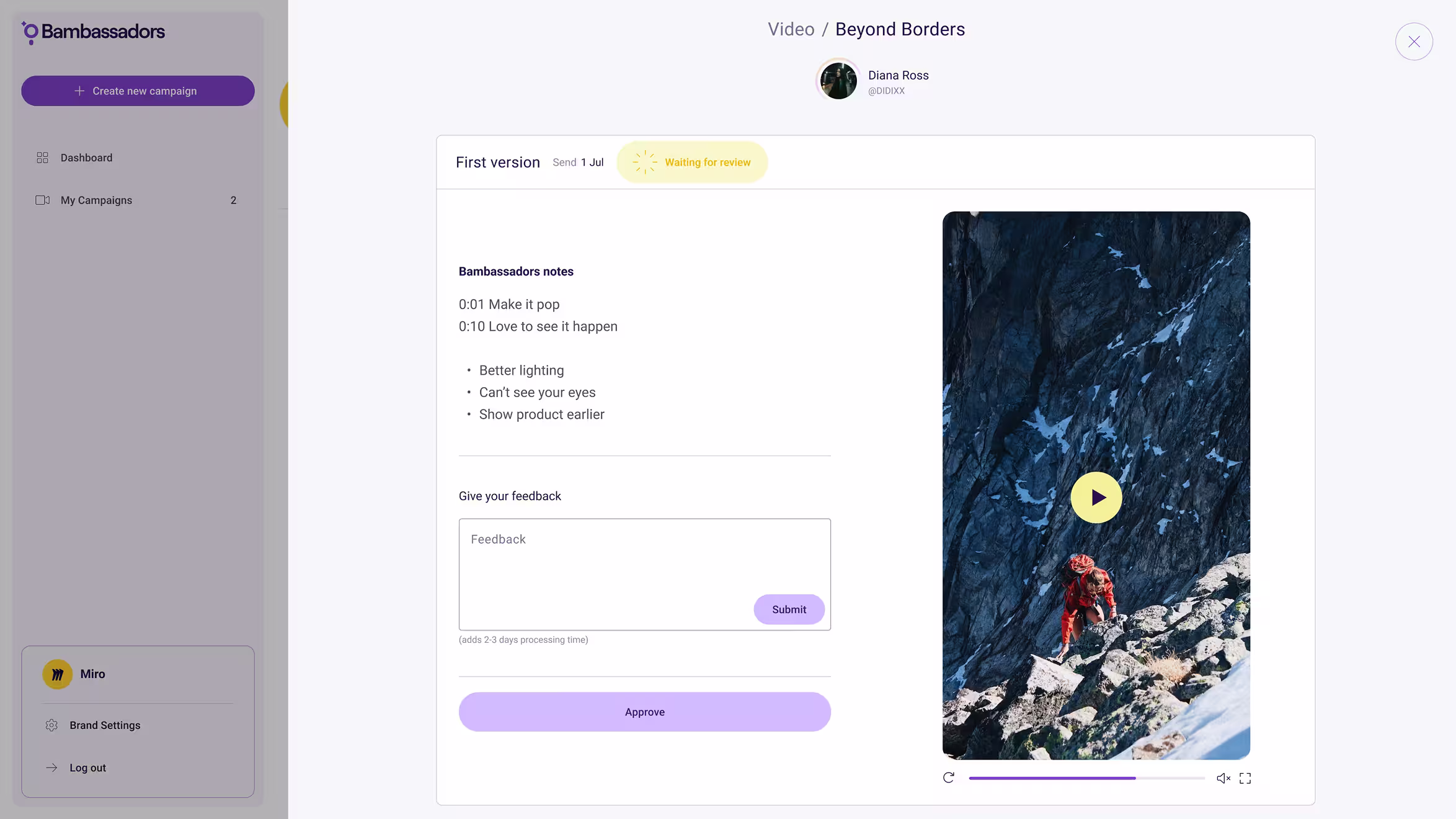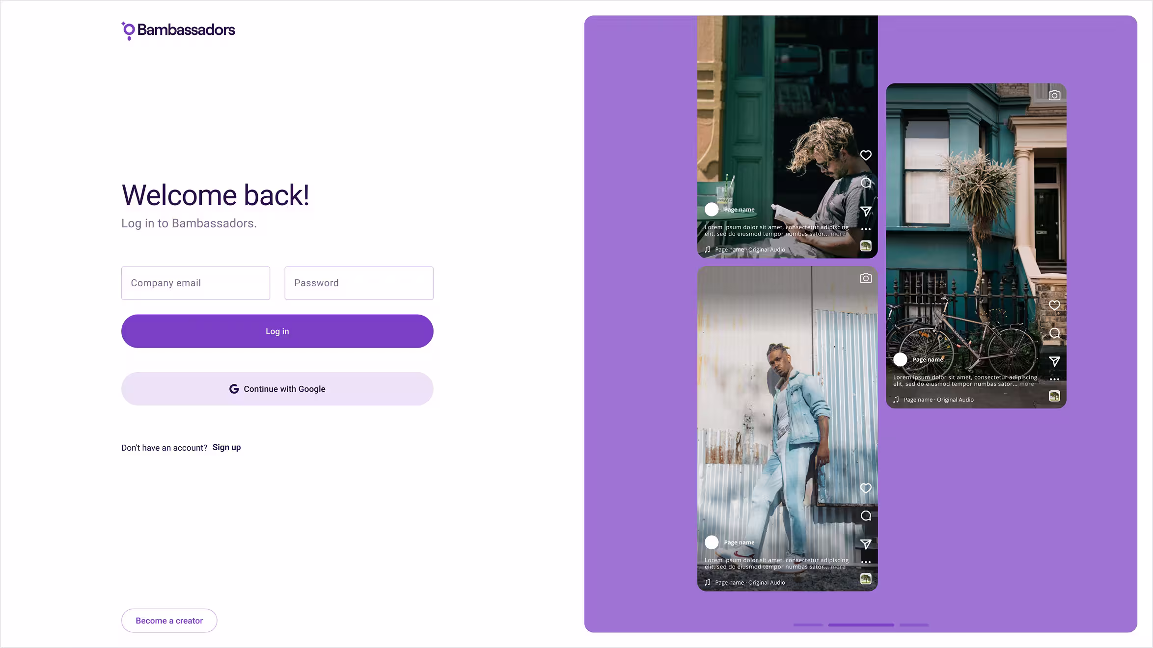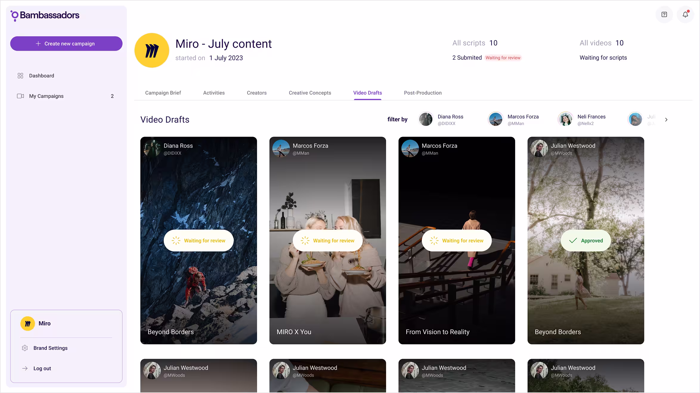 Bambassadors had a promising product and growing customer base—but both the brand and the platform UI weren’t doing them justice. The branding felt too generic for a product rooted in creativity, and the UX was struggling to guide users across complex multi-role workflows. They needed a brand that could stand out and a product experience that could scale. - Approach