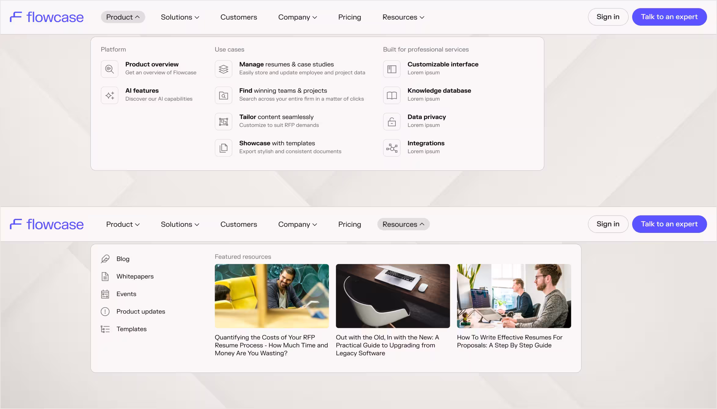 Flowcase, a platform enabling enterprise companies to manage CVs and resumes for large-scale projects, needed a website that would reflect its new brand and appeal to an enterprise audience.Previously, their digital presence resembled an early-stage startup, which didn’t align with the expectations of high-level enterprise clients. The challenge was to create a polished, scalable, and professional website that positioned Flowcase as a trusted enterprise solution. - Approach