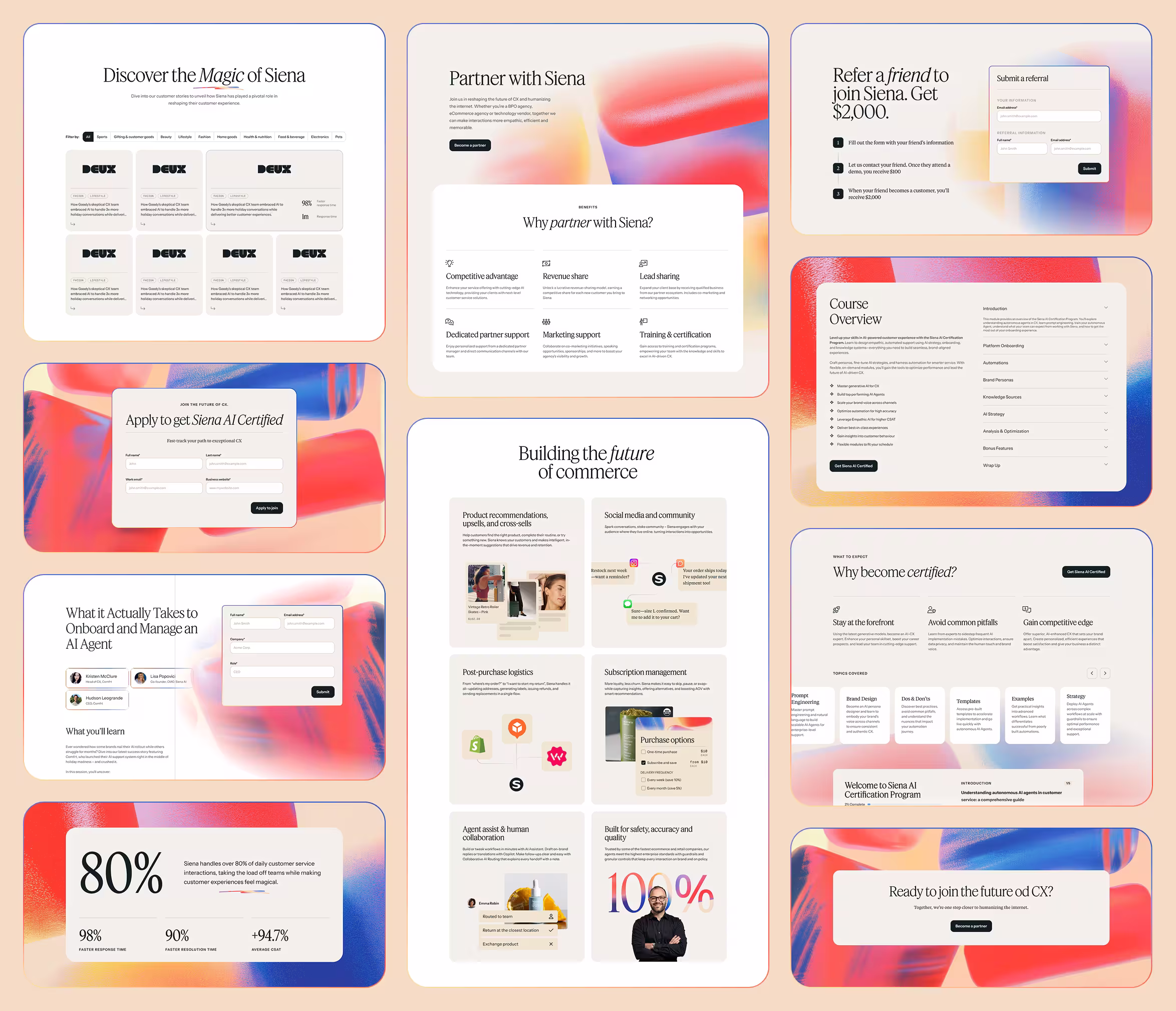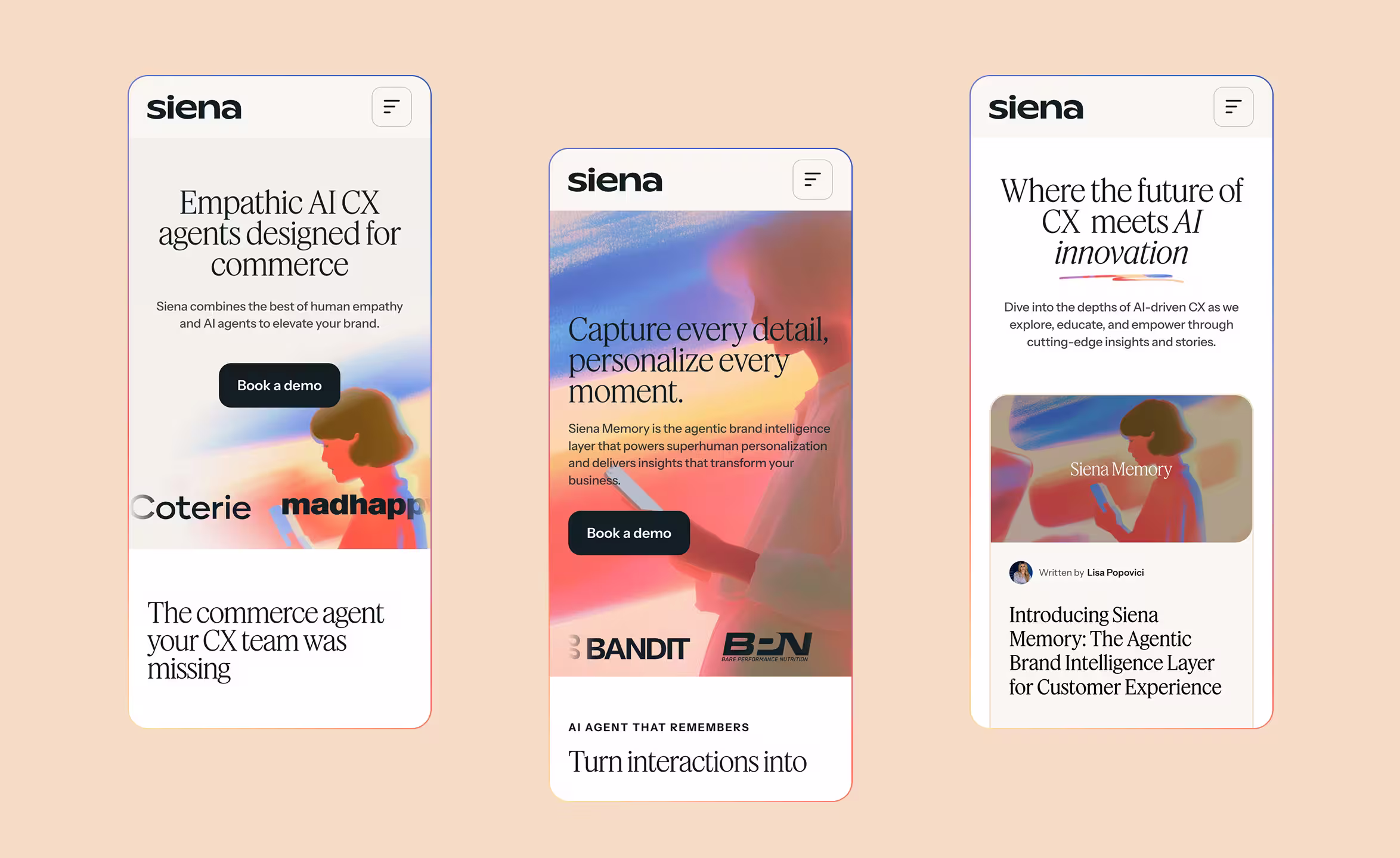 Siena, an AI Customer Experience (CX) Agent company, was rapidly growing but had an outdated, single-page website that didn’t reflect their innovative solutions or competitive edge.They needed a full-scale website that would not only showcase their technology and case studies but also tell a compelling story that differentiates them in the market. Their existing interface lacked detail and depth, and they required a design that emphasized key features and boosted conversions. - Approach